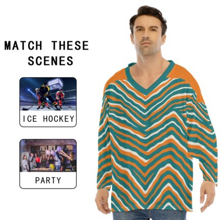 Miami Dolphins Zubaz Miami Dolphins Zubaz All-Over Print Men’s V-neck Ice Hockey Jersey – Bring the vibrant energy of Miami