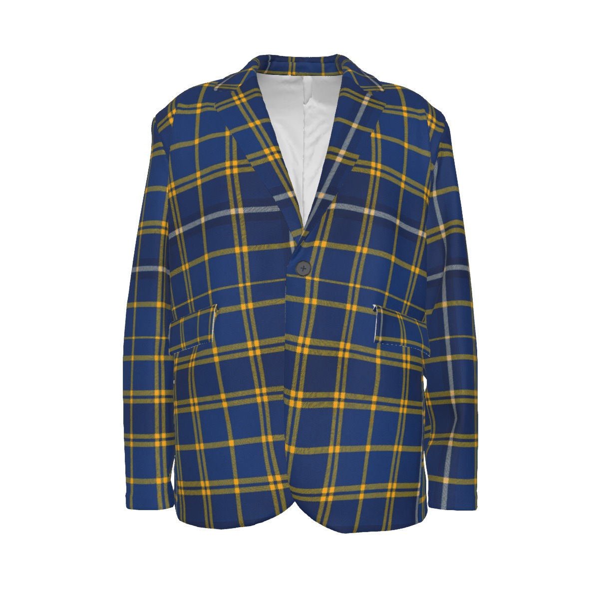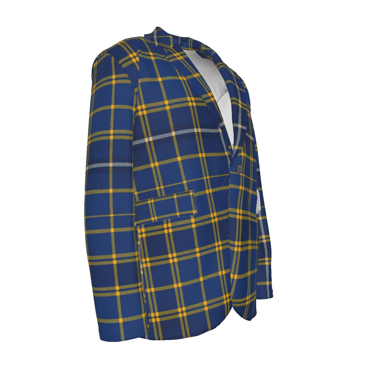 TheΒ UCLA West Coast Heritage Plaid BlazerΒ is crafted for men who appreciate relaxed sophistication with a bold visual identity. Featuring a strikingΒ royal blue base intersected with golden yellow and crisp white plaid lines, this blazer delivers a fresh, confident look inspired by classic California collegiate style.