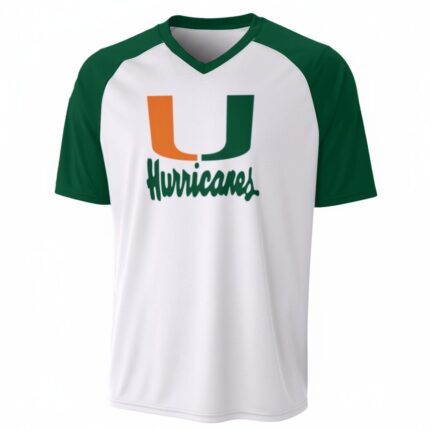 Discover the Miami - Hurricanes V-Neck Short Sleeve T-Shirt, a perfect blend of comfort, style, and team spirit. Available exclusively at Jacketon, this piece is designed for true fans who want to show their pride on Game Day and beyond.