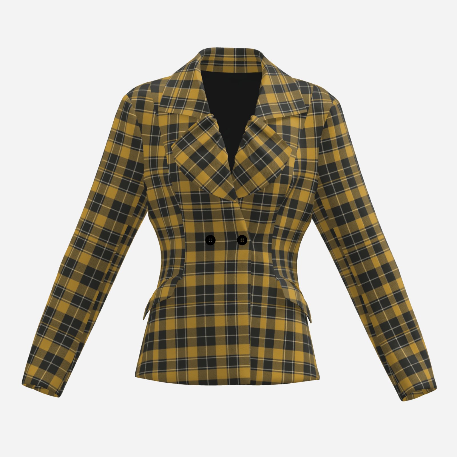 The striking yellow base combined with black and white plaid lines creates a powerful visual contrast, while the tailored, waist-defining fit enhances the body’s natural shape. Finished with a double-breasted design, this blazer transitions effortlessly from game day outfits to smart casual streetwear.